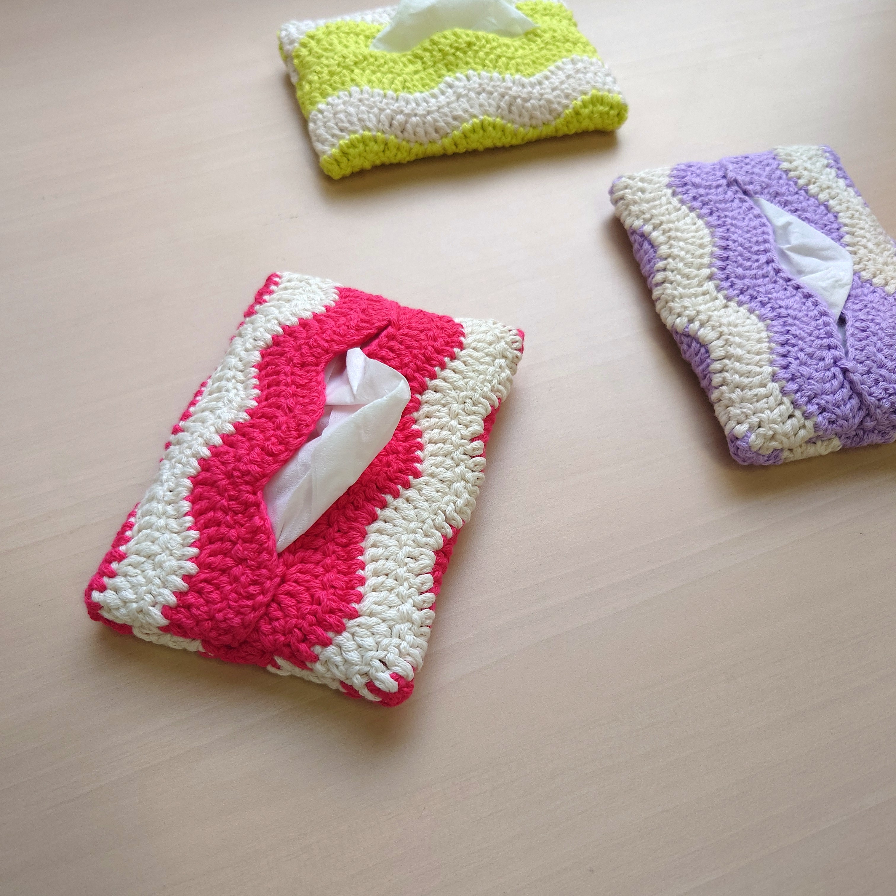 かぎ針アミュレ5/0号で作る『ウェーブ柄のティッシュケース』スターターセット ピンク